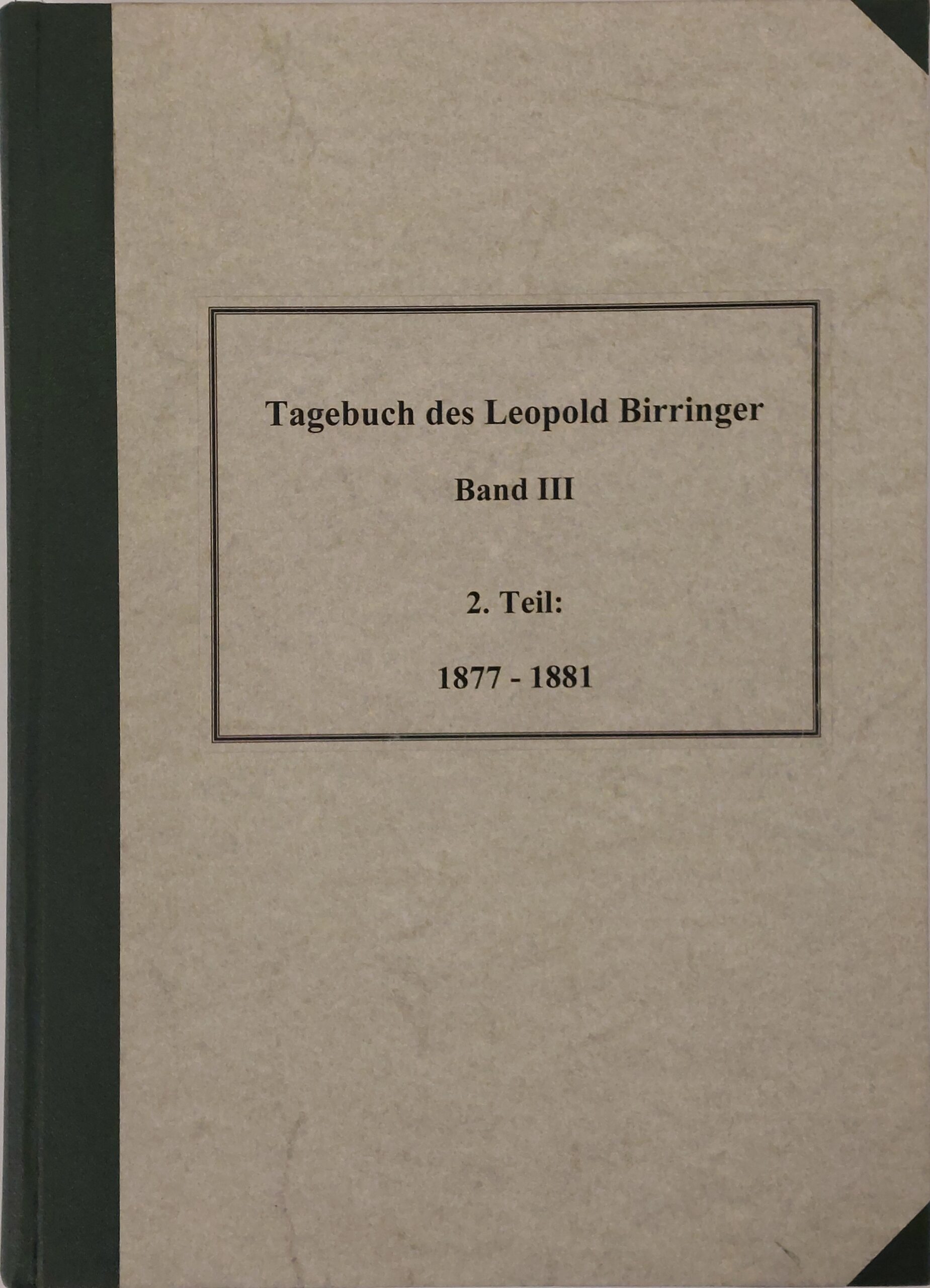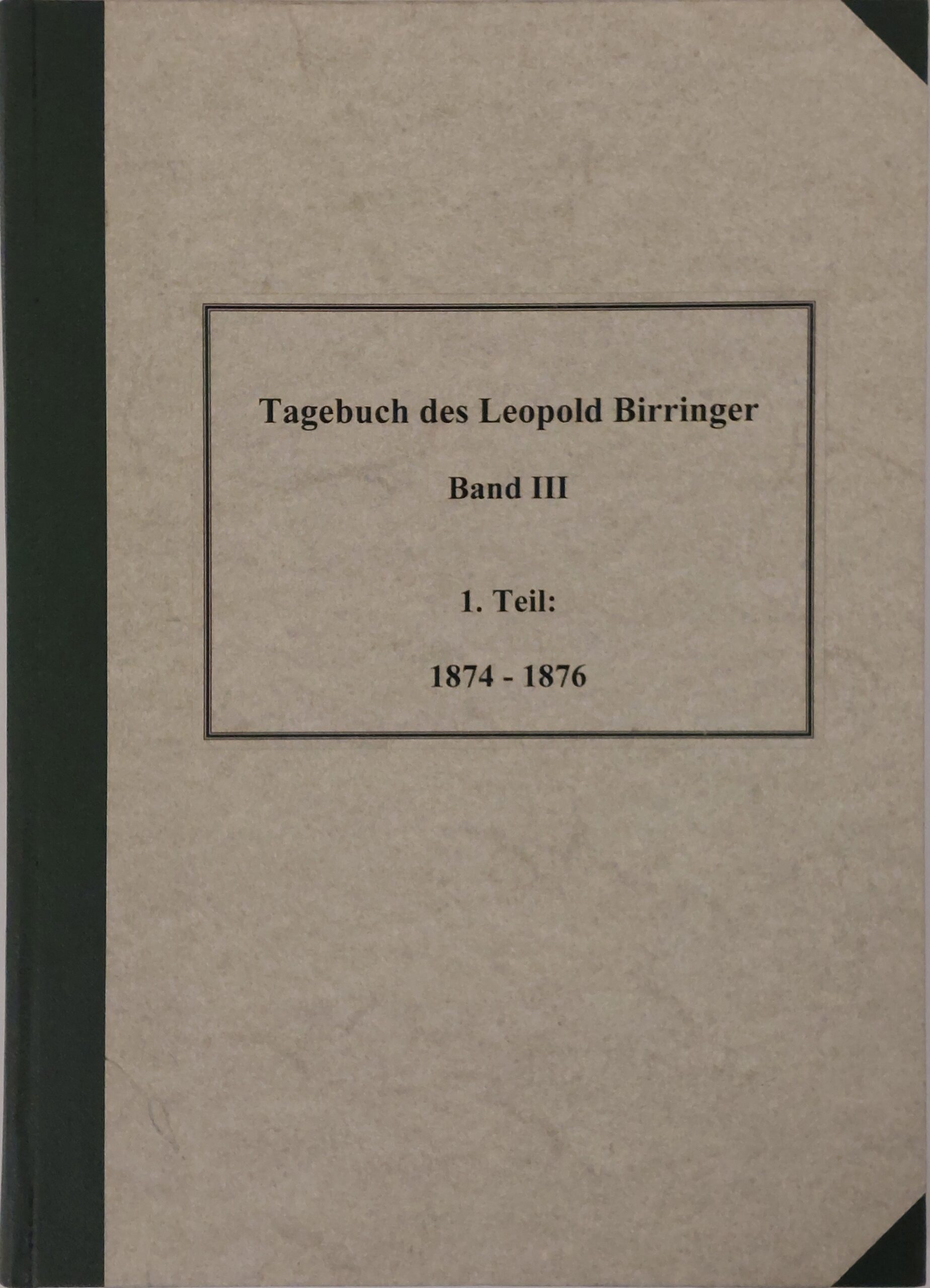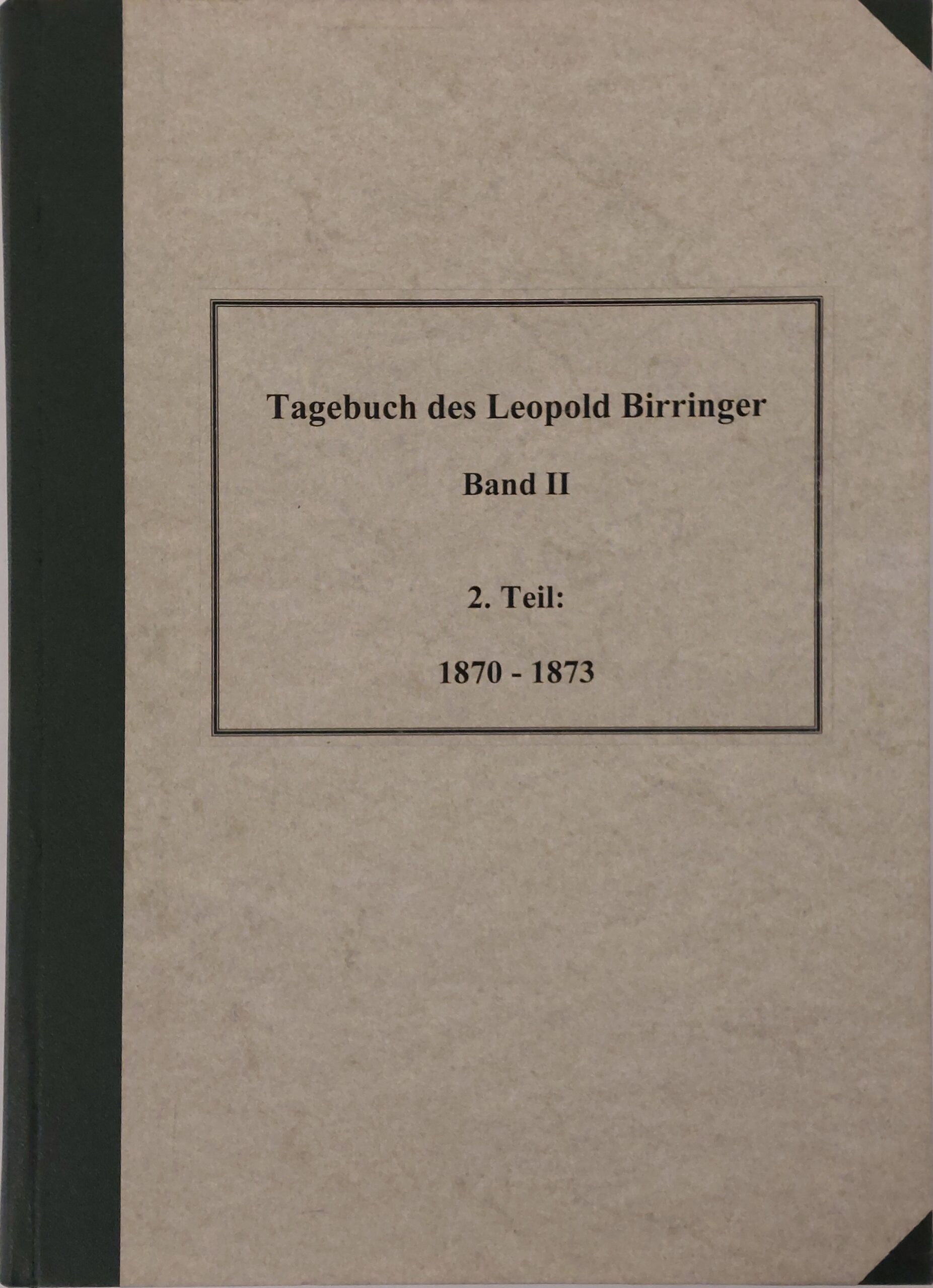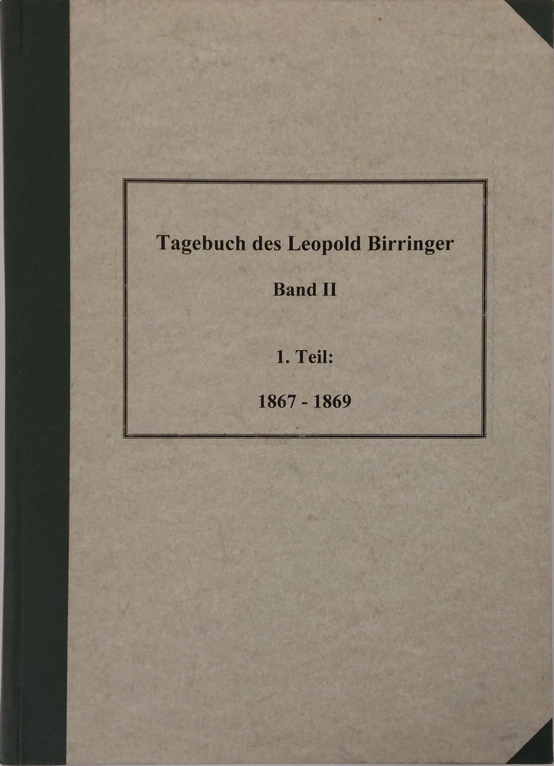 Tagebuch Leopold Birringer↑ [ Private und Vereine ]Band I 1864-1866Band II, 1. Teil 1867-1869Band II, 2. Teil 1870-1873Band III, 1. Teil 1874-1876Band III, 2. Teil 1877-1881